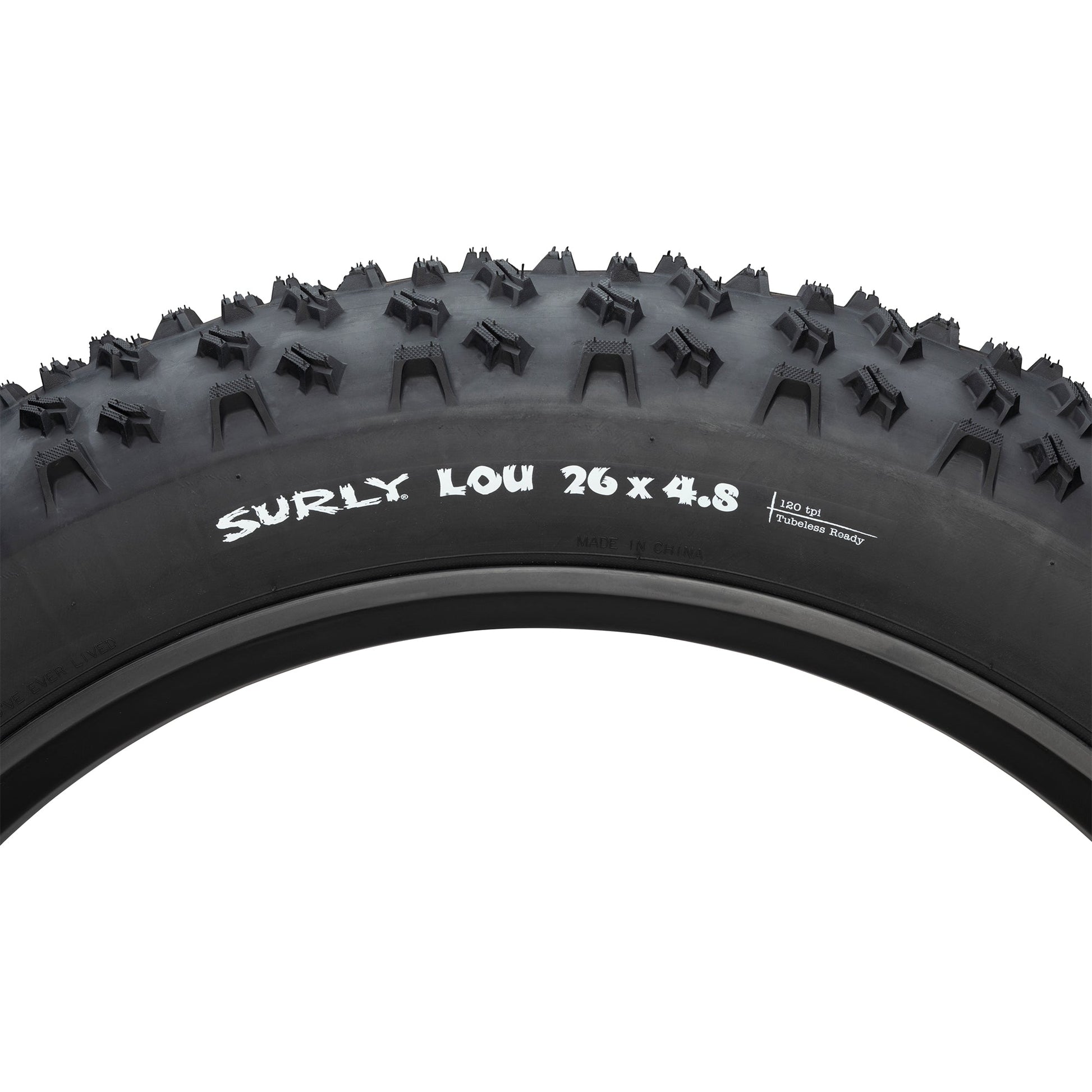 Lou is the 26” x 4.8” rear-specific mate to Bud. Lou’s tread is much like Bud’s with tall knobs designed to grind, crawl and claw its way over rooty, rocky, wet, muddy, loose or otherwise inhospitable terrain. Lou’s tread pattern is a bit different, however, made for stability while both braking and accelerating. Its casing is durable, thin-walled 120tpi which conforms well to the ground surface shape. Folding Kevlar bead.