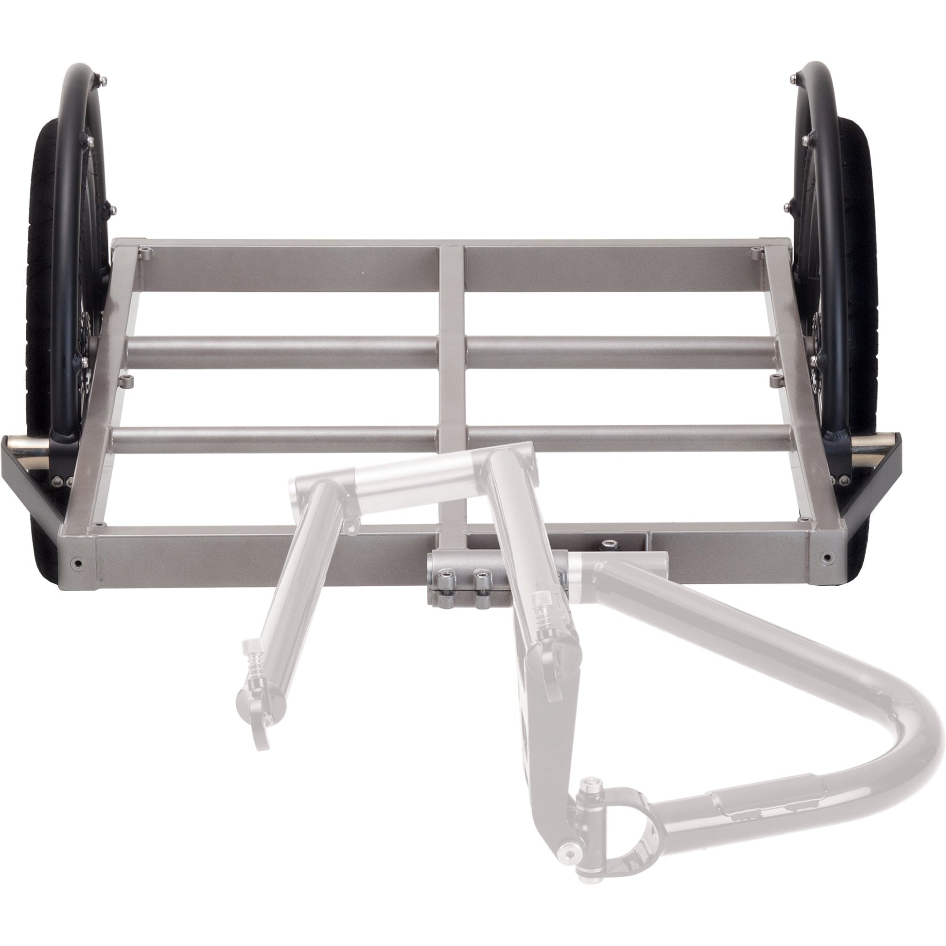 You are looking at our Ted trailer. It is 32” long and 24” wide. Ted is basically the same as our Bill trailer but shorter. It’s made of TIG-welded Chromoly steel for strength and long life. We’ve studied a lot of other trailers and thought about what we want out of a general purpose trailer. From its construction to all the details, we’re proud to offer you a trailer you can use for a long, long time to carry all kinds of stuff. When you don’t need it, it easily disconnects from your bike and when you’re ready to use it again it attaches just as quick and stays attached until you remove it.